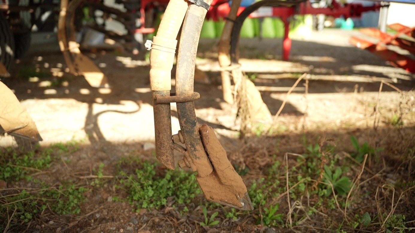 Mathieu a également adapté un ancien outil à dents (Allrounder) en le dotant de pointes fines et d’une tête de répartition pour semer ses couverts végétaux à moindre coût. Ce système montre qu’il est possible d’entrer en ACS sans investir dans du matériel neuf. Pour ce projet rétrofit, il s’est tourné vers son distributeur local Agripartner où il a pu trouver des pièces d’usure adaptées à son besoin.