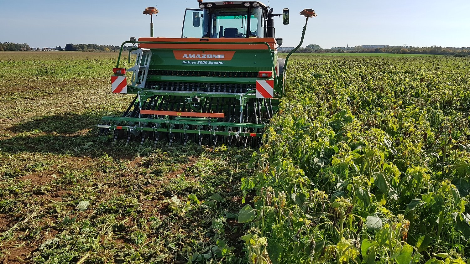 Notons que les semences des couverts couvrant les intercultures féverole-blé, blé-blé et blé-orge de printemps sont épandues avec un DPS 12 et enfouies par un passage de déchaumeur à disques indépendants, qui gère à cette occasion les pailles de blé.