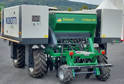 VT-Sem, lui, est un semoir semis direct de série issu de la gamme viticole/arboricole de Simtech. D’une largeur de travail de 1,5 m, il associe disques ouvreurs et dents semeuses avec pointe fine en « T inversé » pour une qualité de semis optimale en semis direct comme sur préparations simplifiées. Sa distribution mécanique à disques de mousse est adaptée à tout type de semences, en pur comme en mélange.